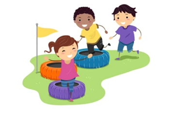 Make a fun and challenging workout using things used in the home, such as hula hoops, cones and jump ropes. Children will learn to run on it on teams or individually.
